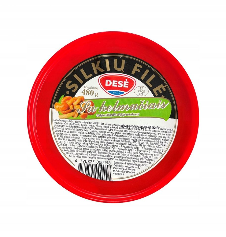 Wyjątkowe połączenie delikatnych filetów śledzi atlantyckich (Clupea harengus) i aromatycznych marynowanych grzybów w oleju roślinnym z lekką nutą słodyczy. Smak, który łączy tradycję kuchni domowej z wyjątkową świeżością Bałtyku.