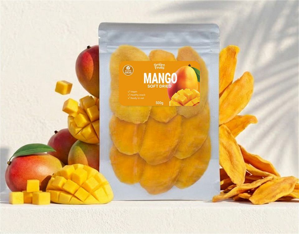 Poznaj wyjątkowe mango soft dried od Smart Fruits – delikatnie suszone plastry mango, które zachowują naturalny smak, aromat i soczystość świeżego owocu.