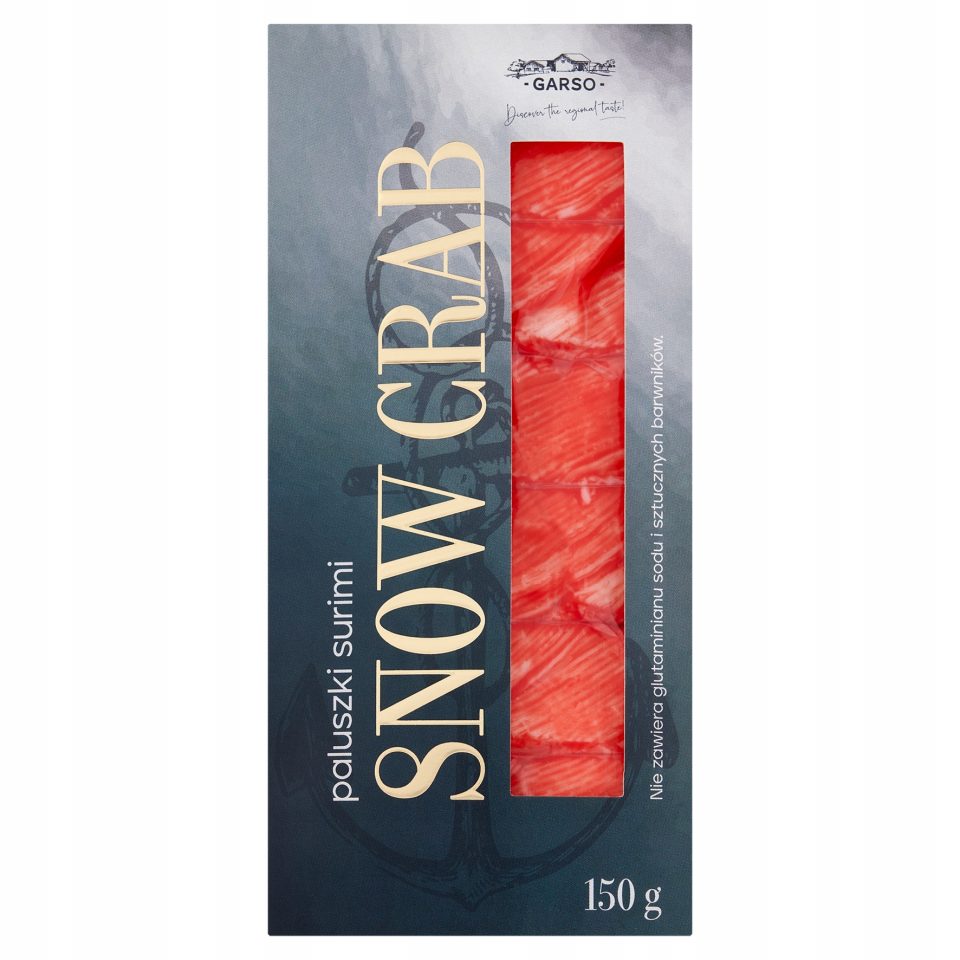 Paluszki surimi Snow Crab marki Garso to doskonała przekąska oraz składnik wielu dań inspirowanych kuchnią azjatycką i śródziemnomorską. Wykonane z wysokiej jakości mięsa rybnego (surimi), charakteryzują się subtelnym smakiem przypominającym mięso kraba śnieżnego oraz przyjemną, soczystą konsystencją.