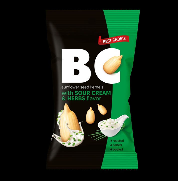 Jeśli lubisz klasyczne smaki typu „śmietana i zioła” — to jest strzał w dziesiątkę. Prażone ziarna słonecznika o smaku śmietany i ziół to chrupiąca, aromatyczna przekąska idealna na co dzień: do pracy, na podróż, do filmu, do piwa albo po prostu „na ząb”. Składniki: ziarna słonecznika łuskane (92 %), olej słonecznikowy, mieszanka smakowo-aromatyczna „śmietana i zioła” (2 %) (sól, maltodekstryna, wzmacniacz smaku: glutaminian sodu (E621), dekstroza, mleko w proszku (z mleka), cebula w proszku, cukier, aromat śmietankowy, pieprz czarny, aromat koperku, przeciwzbrylacz: dwutlenek krzemu (E551)) oraz sól (1,5 %). Może zawierać: orzeszki ziemne, pistacje. Wartość odżywcza na 100 g: energia: 2773 kJ / 662 kcal, tłuszcz: 60 g, w tym nasycone: 7,7 g, węglowodany: 11 g, w tym cukry: 3,4 g, błonnik: 6,8 g, białko: 21 g, sól: 3,5 g.