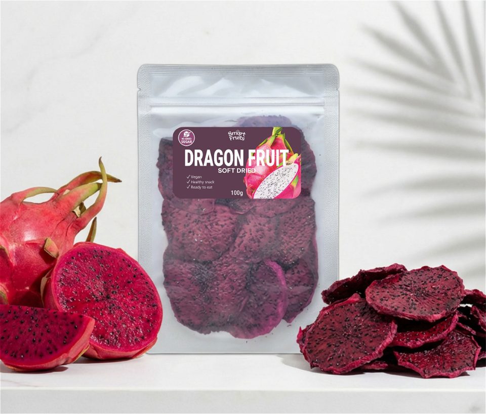 Delikatnie słodkie plastry czerwonego smoczego owocu o wyrazistej, naturalnej barwie, bez dodatku cukru. Lekka, egzotyczna przekąska o oryginalnym charakterze.
